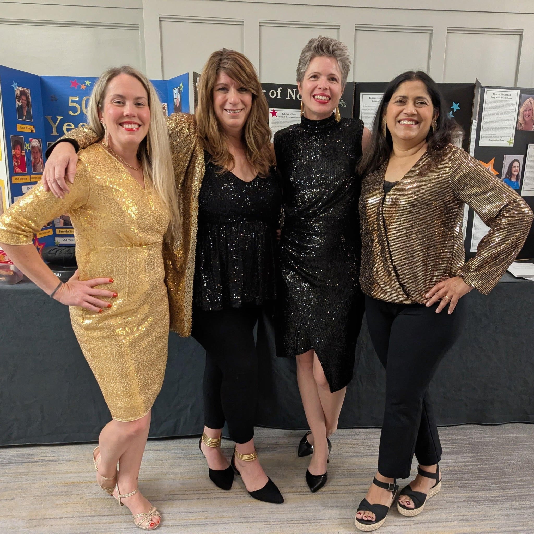 Harmony Celebration Chorus is proud of our outstanding quartets. Being part of a Sweet Adelines quartet means a commitment to musical excellence, teamwork, and engaging live performances. Quartets are available for event entertainment; to book a quartet, contact us here or reach out directly through the social media pages linked below.